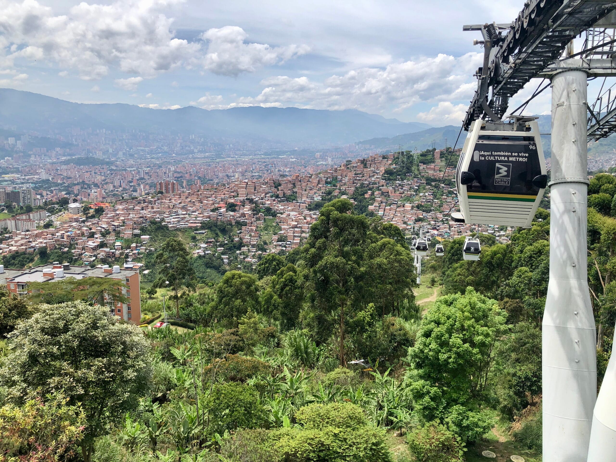 This resulted in, for example, the Metrocable system launched in 2004, the world’s first gondola lift-type public transportation system. The network now consists of 6 lines, 20 stations, and 500 vehicles. The Metrocable gondolas carry commuters from the hillsides to the metro lines and major hubs, and public institutions like libraries and schools are located along the Metrocable lines. This allows easy access to the city and important locations for those who previously found it nearly impossible. The gondola lift is also advantageous because it’s very cheap to build compared to other transportation methods, uses ready-made vehicles (like those used at ski resorts), and navigates hilly terrain without issue. Today, over 22 million people use the gondolas annually in Medellín.